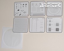 Kalibrační a měřící obrazce KOB-001. Sestava pro ověření zorného pole, délkových a plošných rozměrů. Obsahuje 6 ks obrazců tištěných na kvalitním kartonu se zablenými rohy.