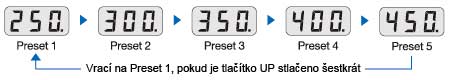 Tato funkce je velmi užitečná, pokuch chcete změnit nastavenou teplotu tak, aby vyhovovala konkrétním pracovním částem, komponentám nebo typům pájecích hrotů. Stačí zvolit požadovanou teplotu z výběru přednastavených teplot, které byly předem nastaveny (může být uloženo až 5 přednastavených teplot). Přednastavená funkce může zabráti problémům a docílit lepší zpracovatelnosti.