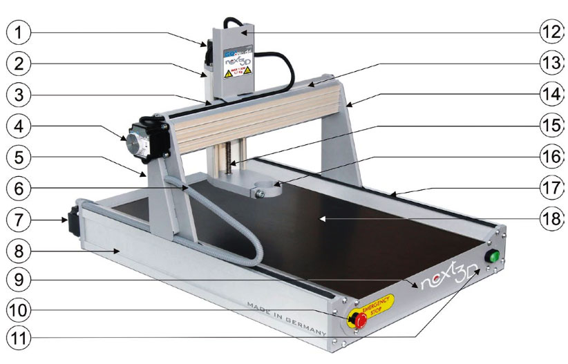 Next3D je nová série frézek, jež byla v plném rozsahu vyvinuta německými výrobci a po dvou letech vývoje můžeme představit zařízení, jaké v této cenové hladině na trhu není. Přitom je nutné zdůraznit, že během fáze vývoje byl kladen velký důraz na bezporuchovou a jednoduchou montáž, spolehlivost a dlouhou životnost zařízení. Zařízení sestaví člověk s technickým myšlením a manuální zručností. Český zástupce výrobce samozřejmě poradí se sestavením stroje. Při vlastním sestavování frézky se seznámíme s technologií CNC daného stroje. Pro představu nejprve popíši jednotlivé části stroje.