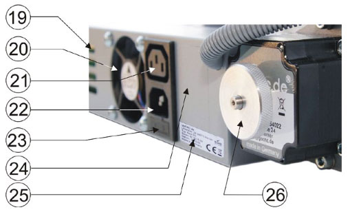 Máme-li ke stroji připojen frézovací motor, jejž chceme zapínat a vypínat příkazem ze softwaru, pak je nutné tuto zásuvku připojit k výstupu výkonu 230 V napájecím kabelem IEC.