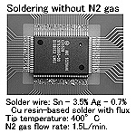 Při použití systému HAKKO N2 je smáčení a rozlití vynikající u eutektické pájky, bezolovnaté pájky a vysokoteplotní pájky ve srovnání s naším pájedlem. Tato vlastnost brání nedostatečnému pájení vlivem můstků, což má velký vliv na opravářské činnosti.